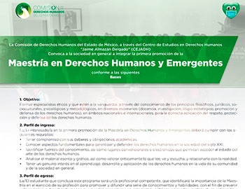 EL 18 DE ENERO TERMINAN LAS PREINSCRIPCIONES PARA LA MAESTRÍA EN DERECHOS HUMANOS Y EMERGENTES QUE OFERTA LA CODHEM