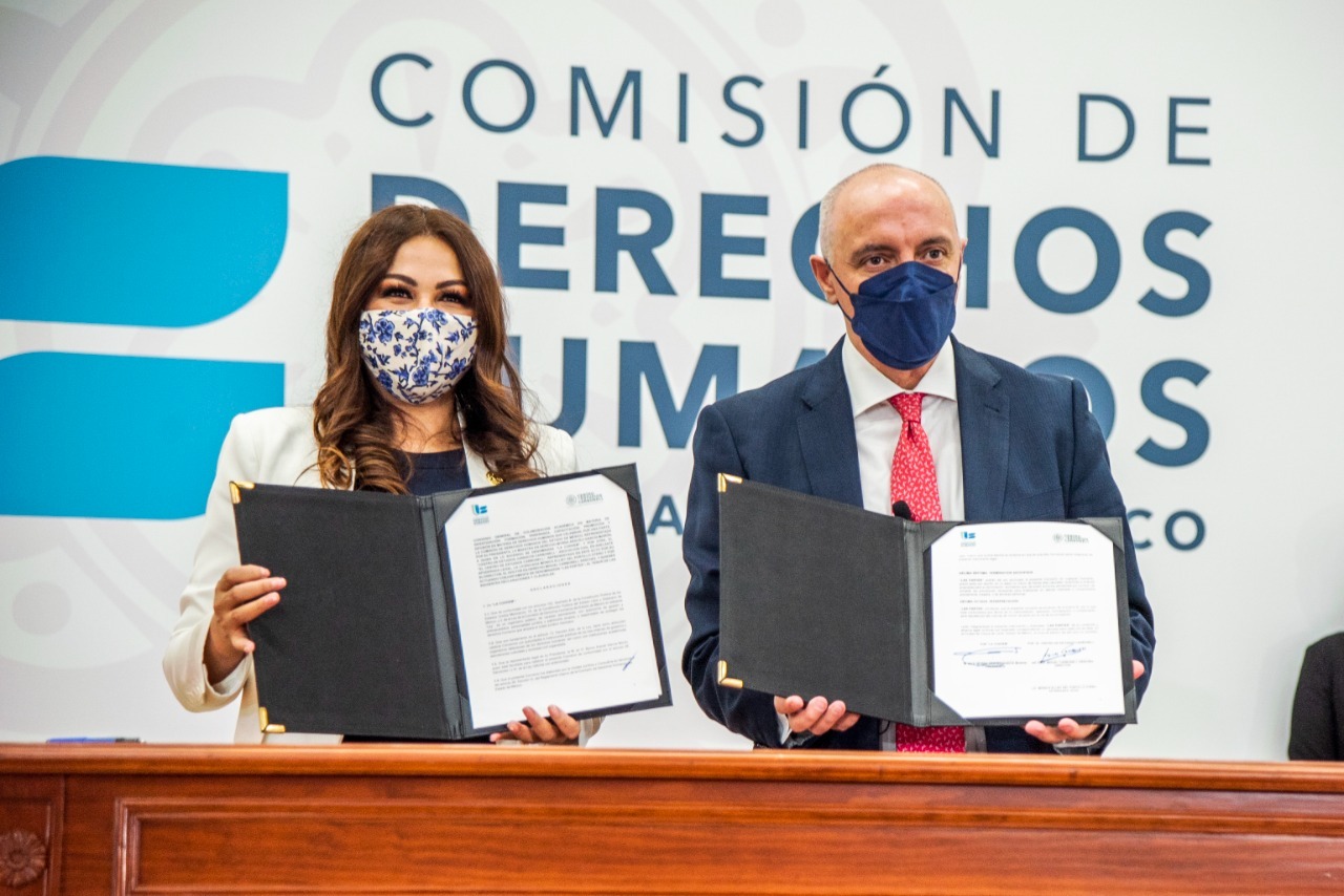 Derechos Humanos de la LXI Legislatura local, Juanita Bonilla Jaime e integrantes del Consejo Consultivo, entre otros invitados, la titular de la Codhem firmó un convenio general de colaboración con el director del Centro de Estudios Carbonell