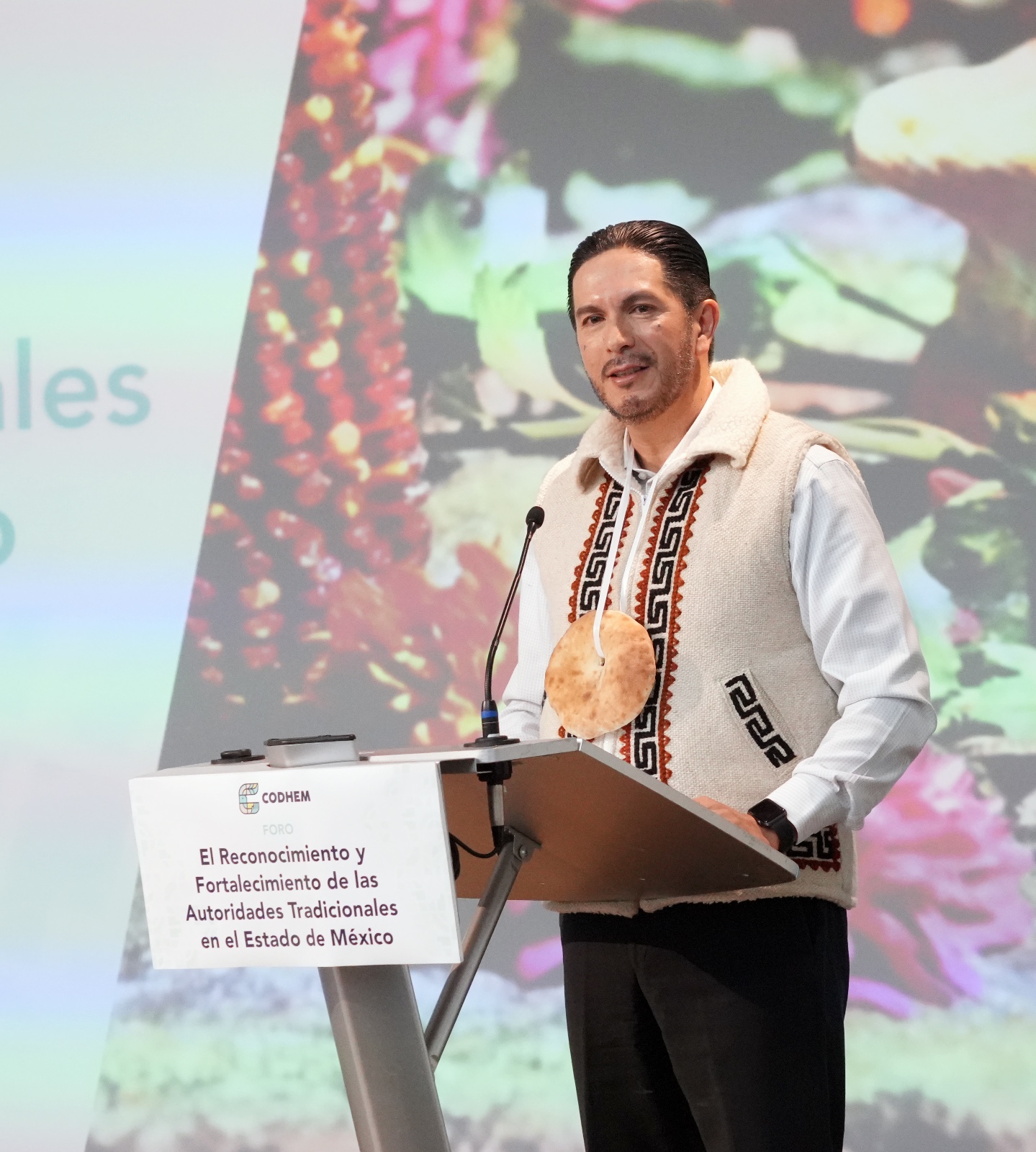 Toluca, Estado de México, 27 de noviembre de 2025.- La Comisión de Derechos Humanos del Estado de México (CODHEM) llevó a cabo el Foro “El Reconocimiento y Fortalecimiento de las Autoridades Tradicionales en el Estado de México en el Marco de la Reforma Constitucional en Materia de Derechos Indígenas (2024)”. En dicho encuentro, el Presidente Víctor Leopoldo Delgado Pérez presentó la nueva imagen institucional para el periodo 2025-2029, inspirada en la historia, la cultura y la diversidad de la entidad mexiquense.