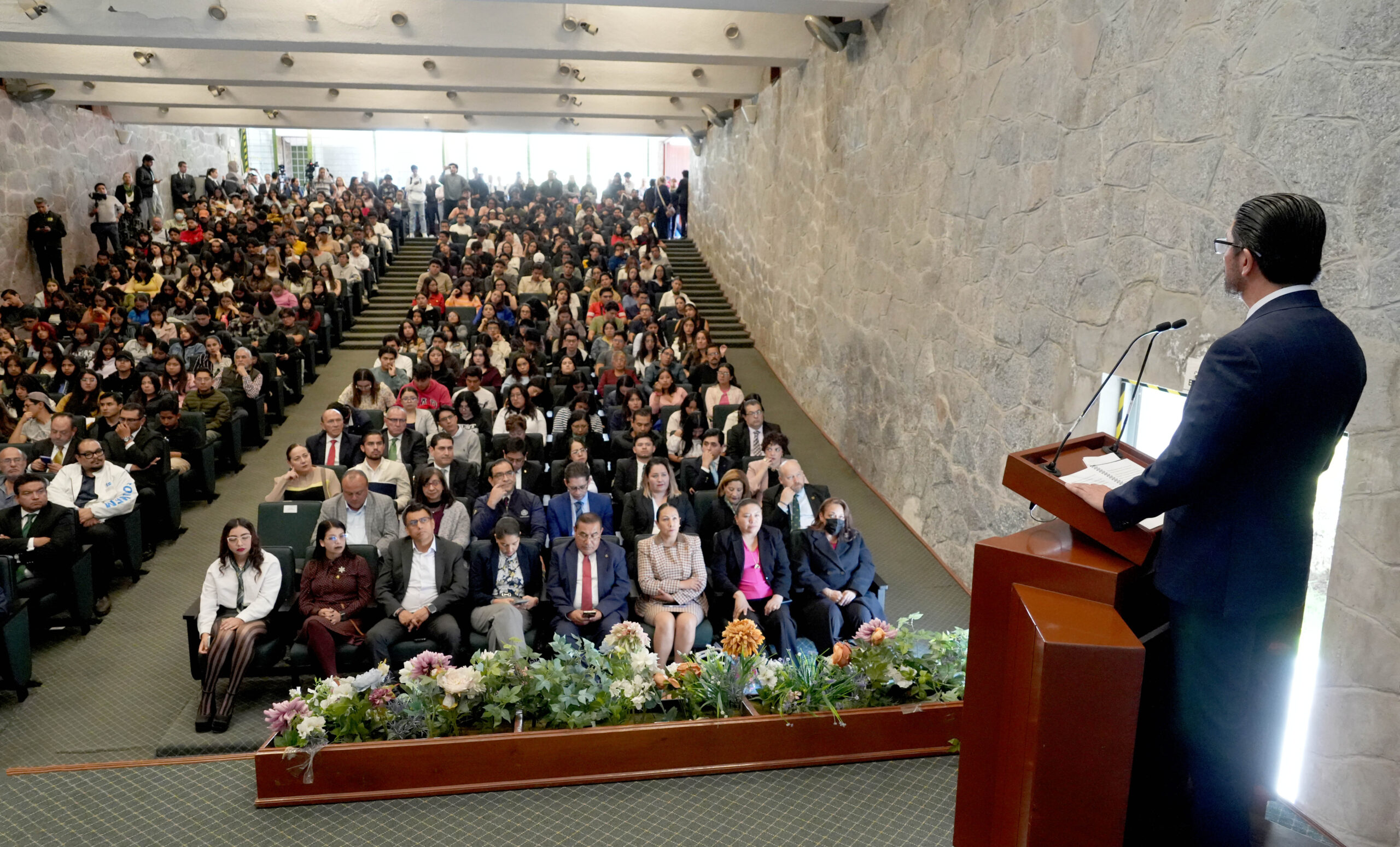 Ante la rectora de la UAEMéx, Martha Patricia Zarza Delgado, alumnado e integrantes de la comunidad universitaria, aseguró que “como egresado de la Facultad de Derecho es un honor aportar la perspectiva de los derechos humanos a este proceso de reforma de ley, además, tengo el privilegio de formar parte de esta comunidad verde y oro como docente de la asignatura de Medios Alternos de Solución de Conflictos, con lo que reafirmo que enseñar también es aprender y que el diálogo, la empatía y la razón son los puentes más sólidos para construir una convivencia pacífica, inclusiva y justa”.